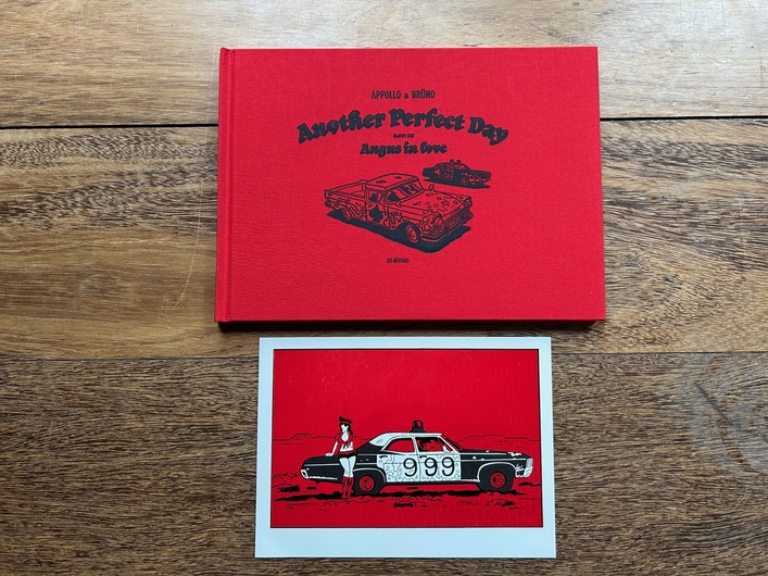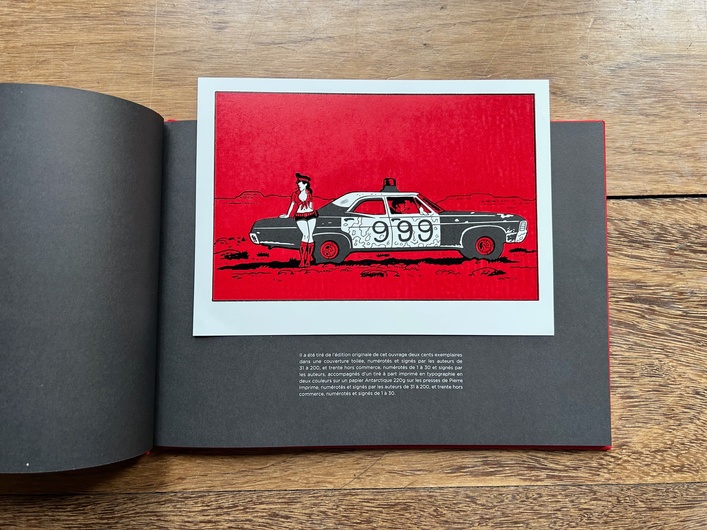 Une édition limitée à 200 exemplaires signée et numérotée par Brüno présentée dans une couverture toilée rouge avec un marquage noir.