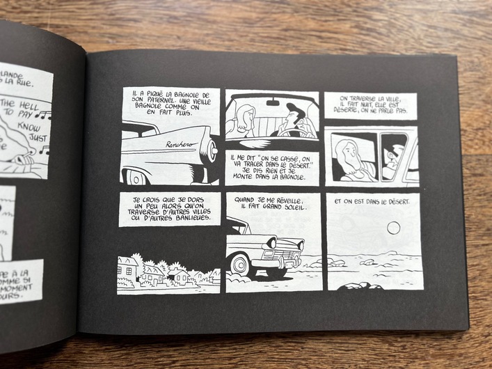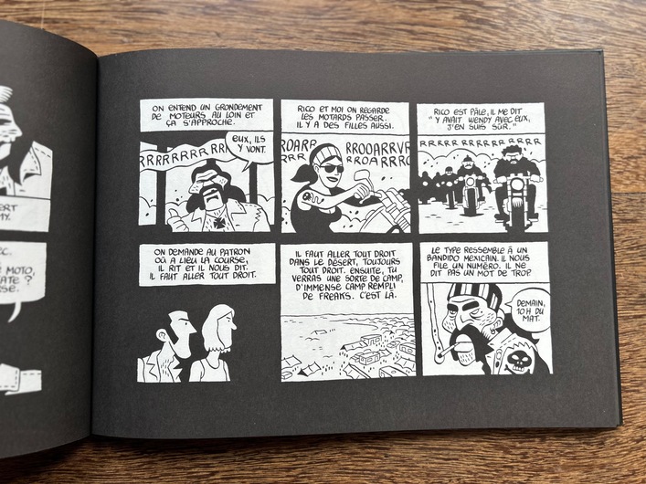 Dans la première, il est question d’errance dans le désert où deux potes s’ennuient à mourir dans une banlieue d’une ville moyenne et décident de tracer en écoutant la musique de leur groupe préféré. Une halte à l’As de Pique, un bar perdu, tenu par Lemmy va les mettre en piste pour participer à une course dingue de voitures dans le désert. Rico parviendra-t-il à retrouver Wendy, la femme de sa vie ?