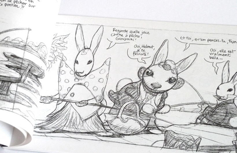 Guisseppe, Helmut et François, trois Lapins, pêchent au bord de la rivière. Ils sont témoins de phénomènes tragiques et bizarres, mais ne s’en préoccupent pas. Ils veulent juste pêcher. Sur un arbre, George, un hibou, les regarde… Première histoire dessinée entièrement au crayon par Carlos Nine pour Les Rêveurs. Une métaphore sur les rapports entre les « grands dirigeants » de ce monde en 2002.